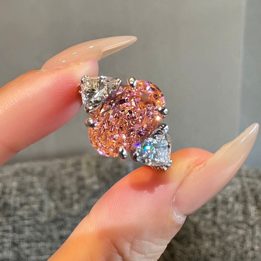 S925 Silver High Carbon Lab Created Diamond Red Corundum Ring